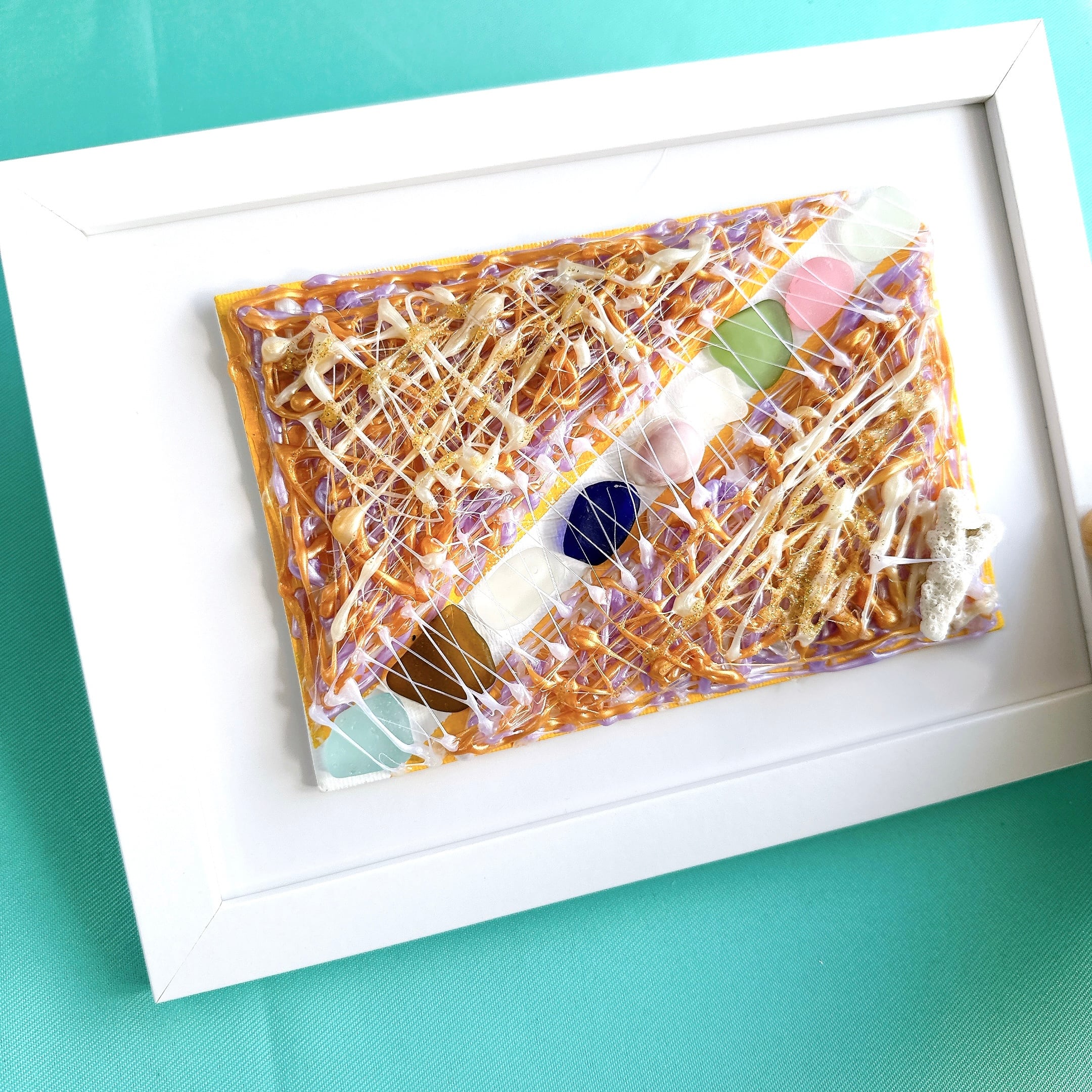 グルーガンを何層にも重ねシーグラスを閉じ込めたアートになります