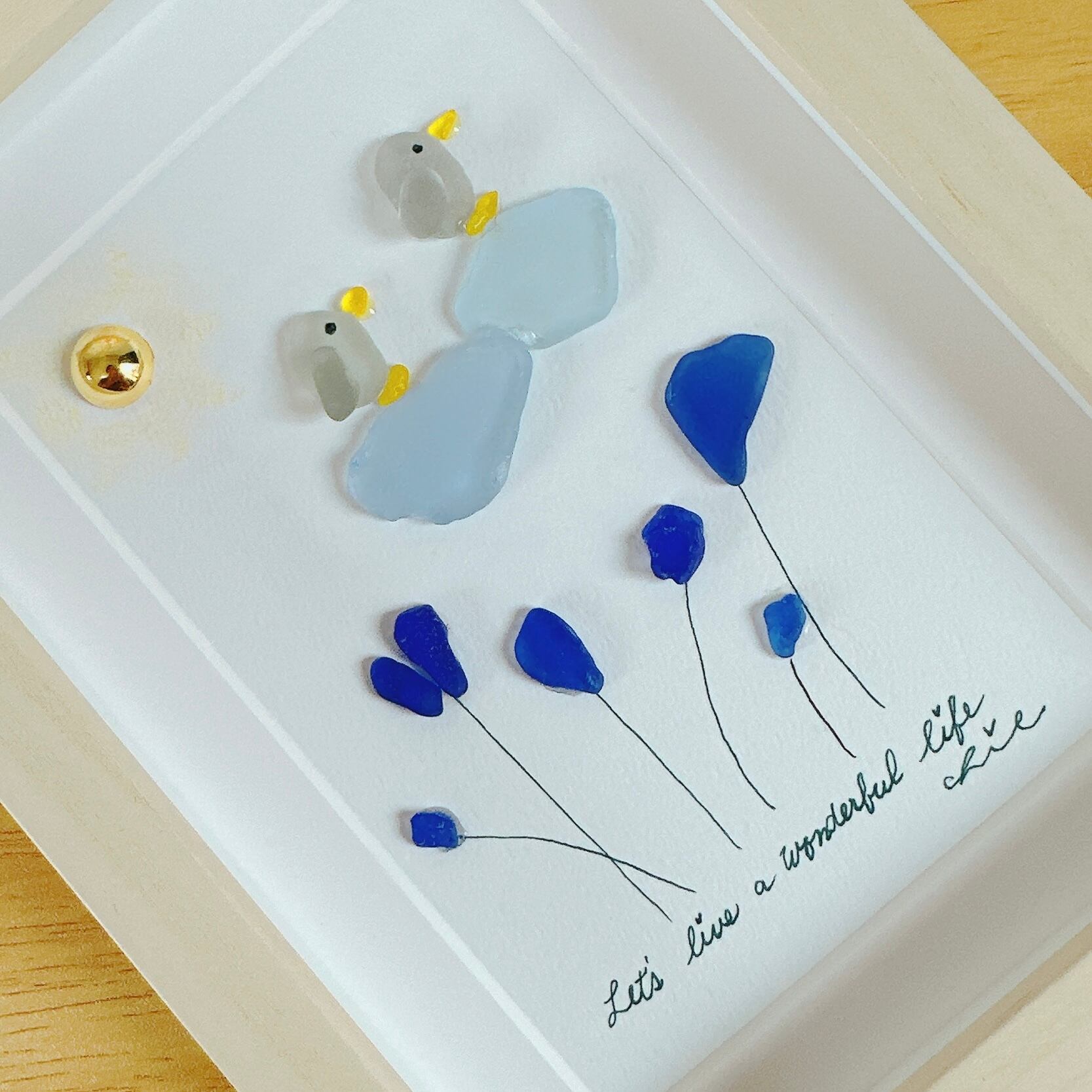 レアカラーのコバルトブルーのシーグラスをお花のイメージに