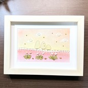 木製フレームでフロントには作品にほこりがつきにくいアクリル板がついております