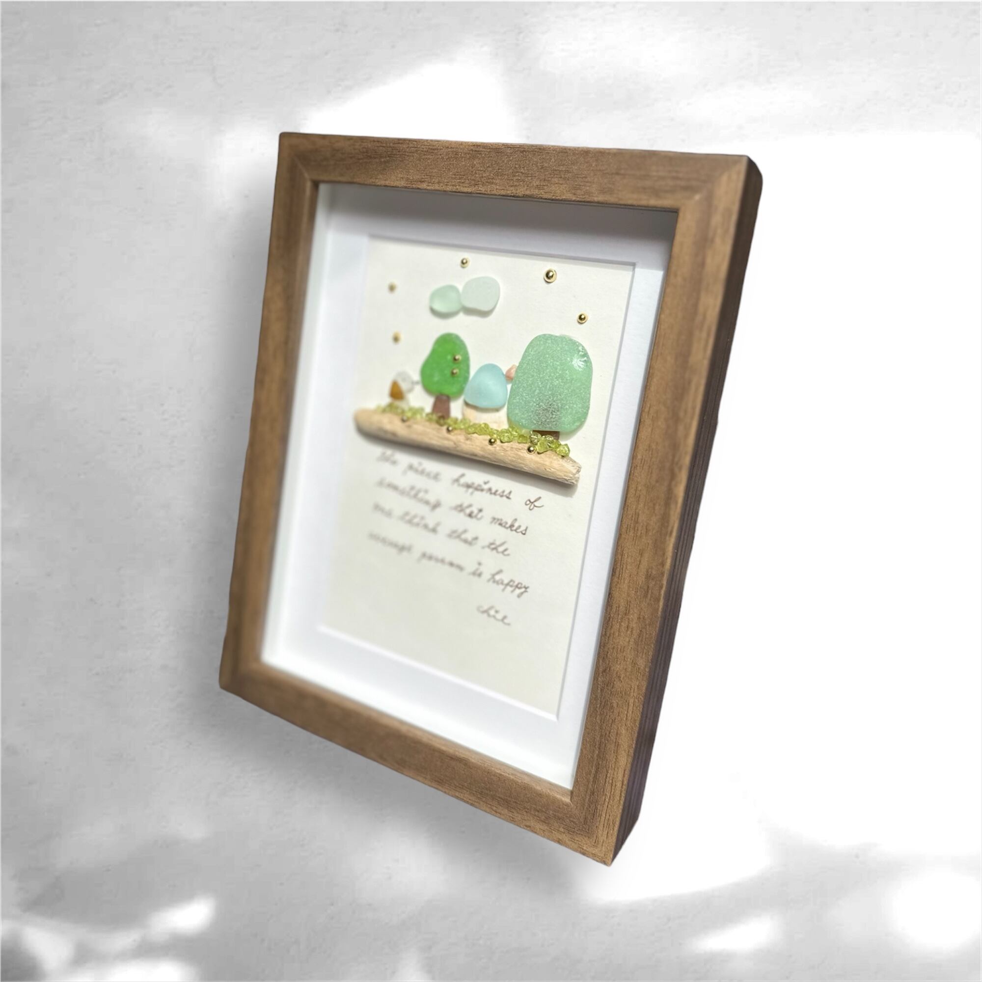 大きな木と天然の貝殻で出来たお家、屋根は綺麗な水色のシーグラスを使って居ます