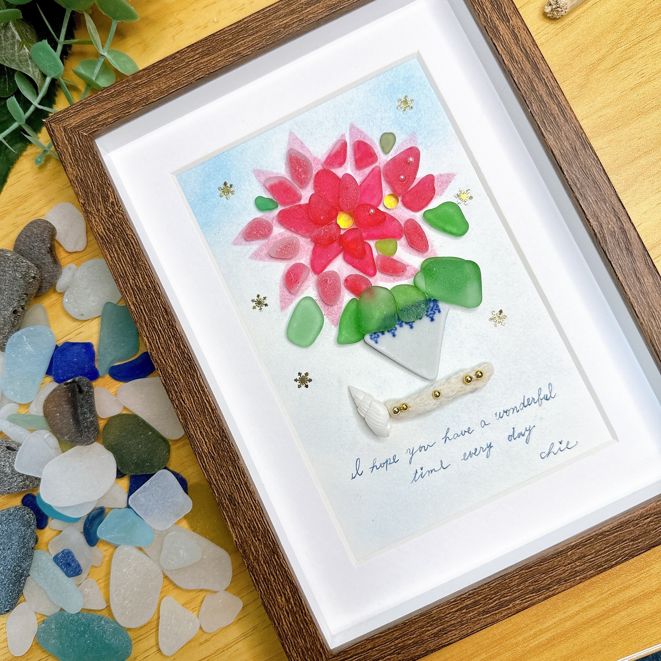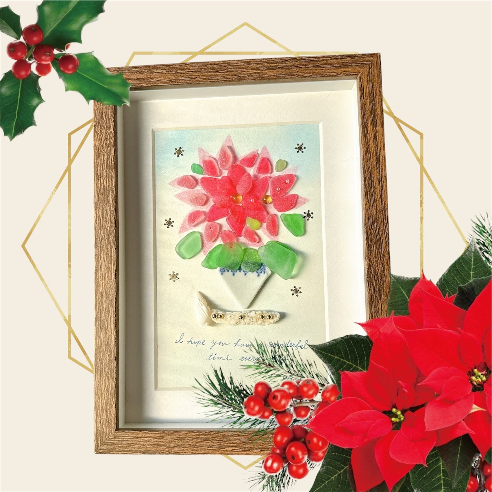 沢山の中からご覧いただき感謝致します シーグラスアート 『ポインセチアの魅力』