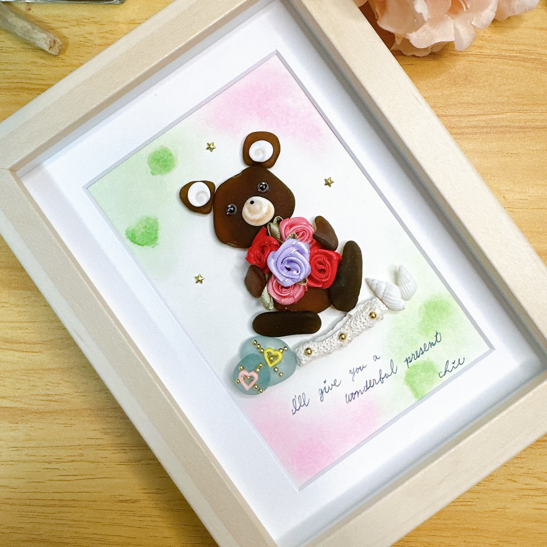 シーグラスアート くまさんからのプレゼント インテリア雑貨
