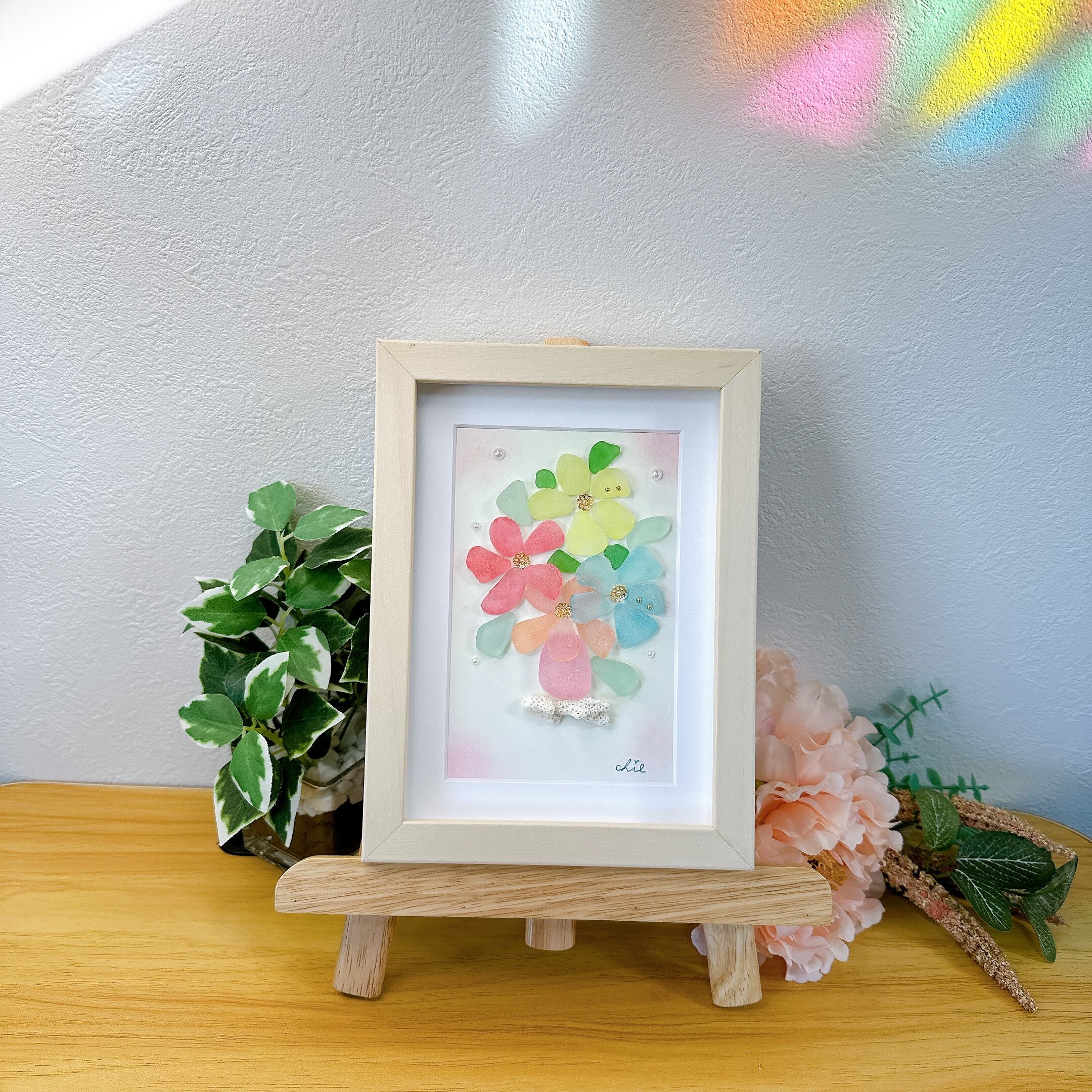 シーグラスアート no. 38 カラフルフラワー② インテリア 癒し 花