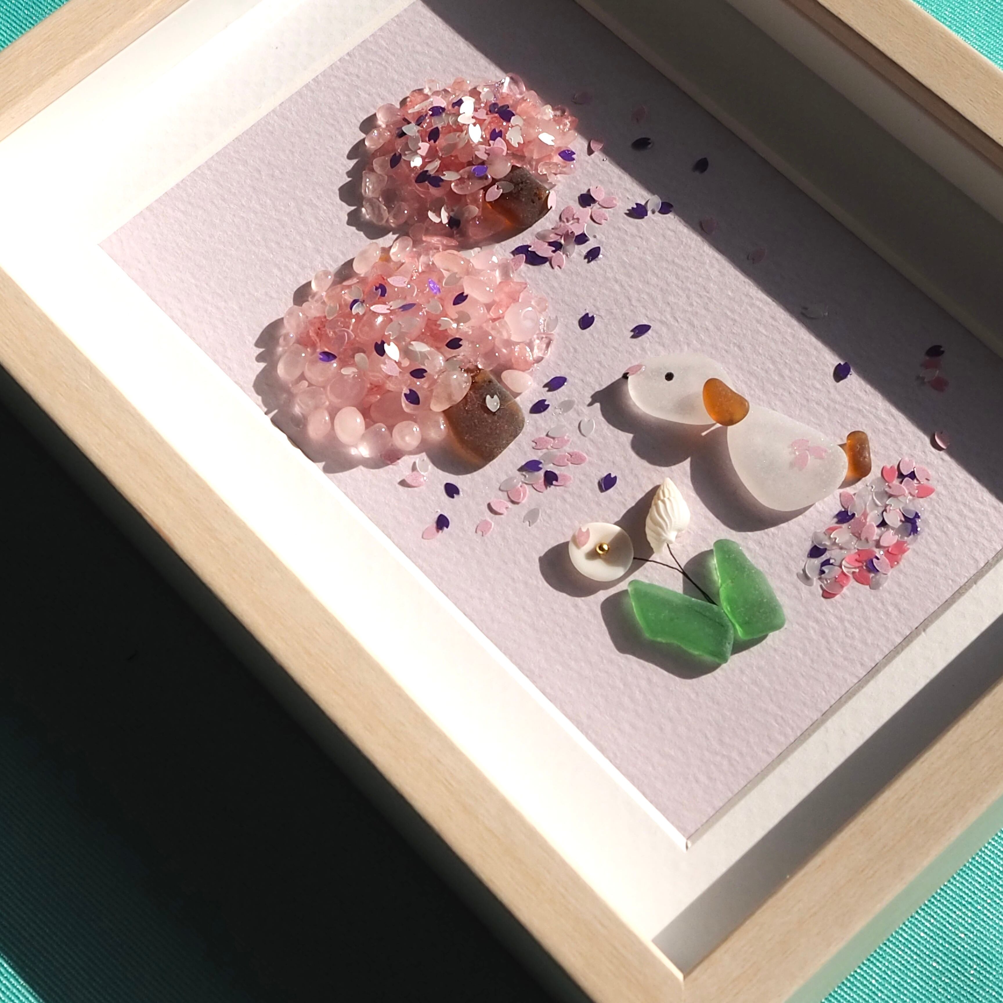 シーグラスアート no.55 『ワンちゃんのお花見』 インテリア アート