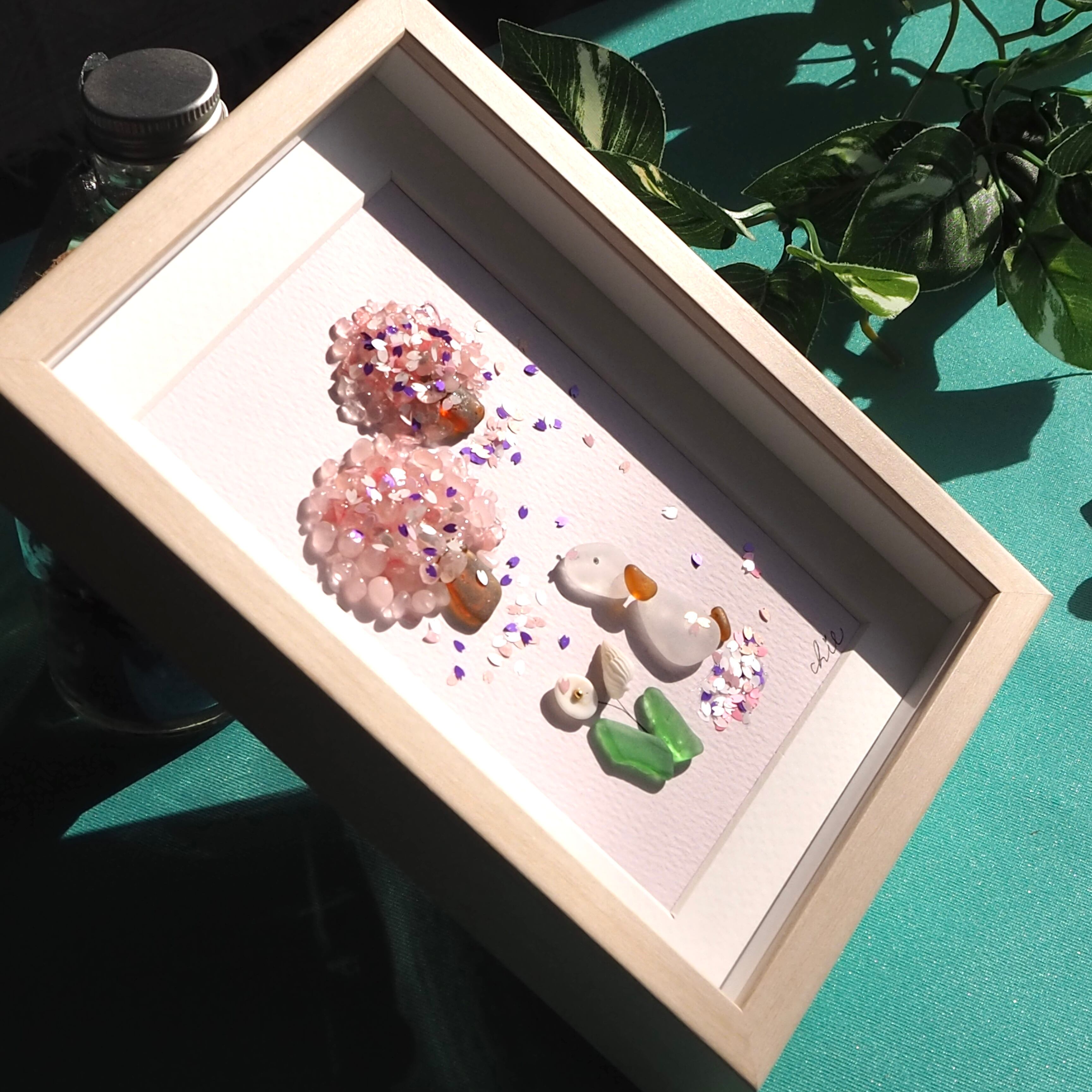 シーグラスは、自然の力によって磨かれたガラスの欠片です。その独特の風合いを活かして丁寧に制作しておりますので、形の歪みやかけがごく自然に感じられることでしょう。それこそがシーグラスの個性であり、作品に深みを与えています。